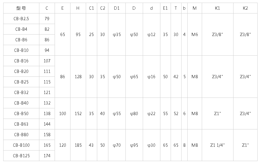 | CB-B125B | 125 | 2.5 | 1450 | 0.25 | 95 | 7.5 |